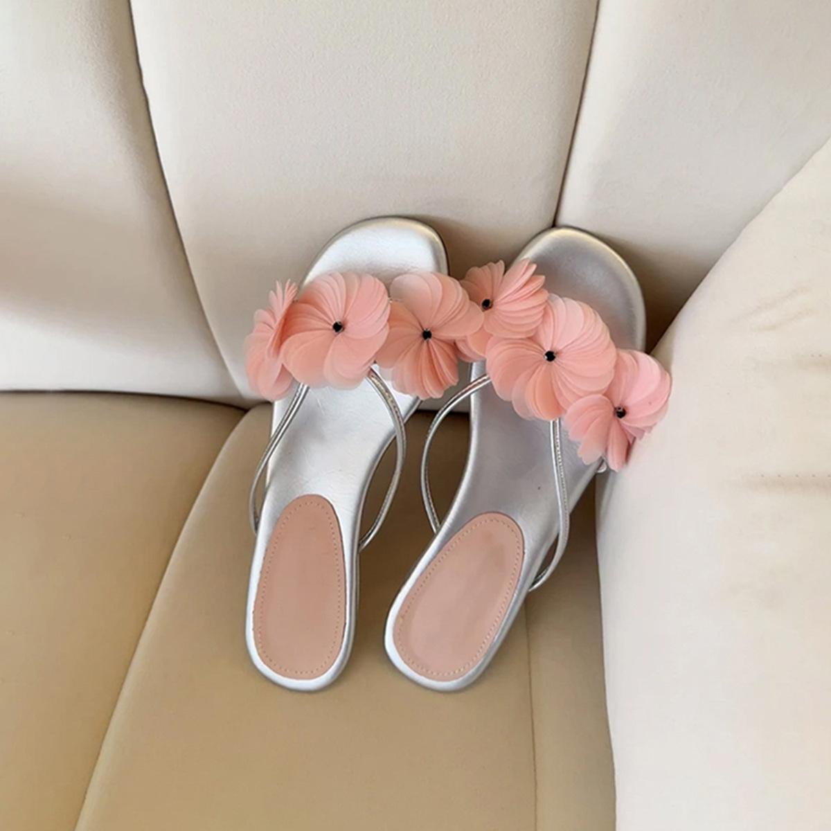 Темперамент Цветок Сладкие Шлепанцы Универсальный Толстый Каблук Пляжные Прохладные Тапочки 40 серебряный