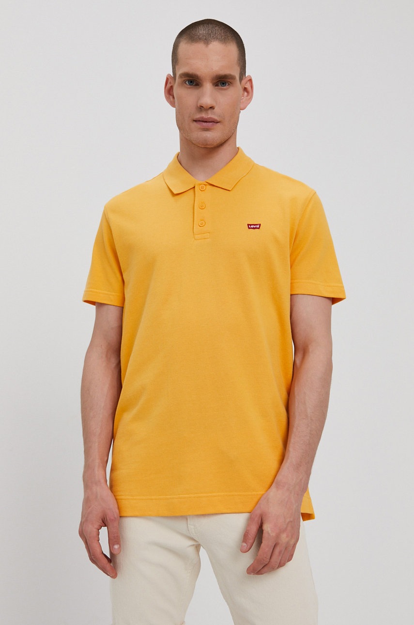 Тениска с яка Levi' мъжка в оранжево с изчистен дизайн, Оранжев