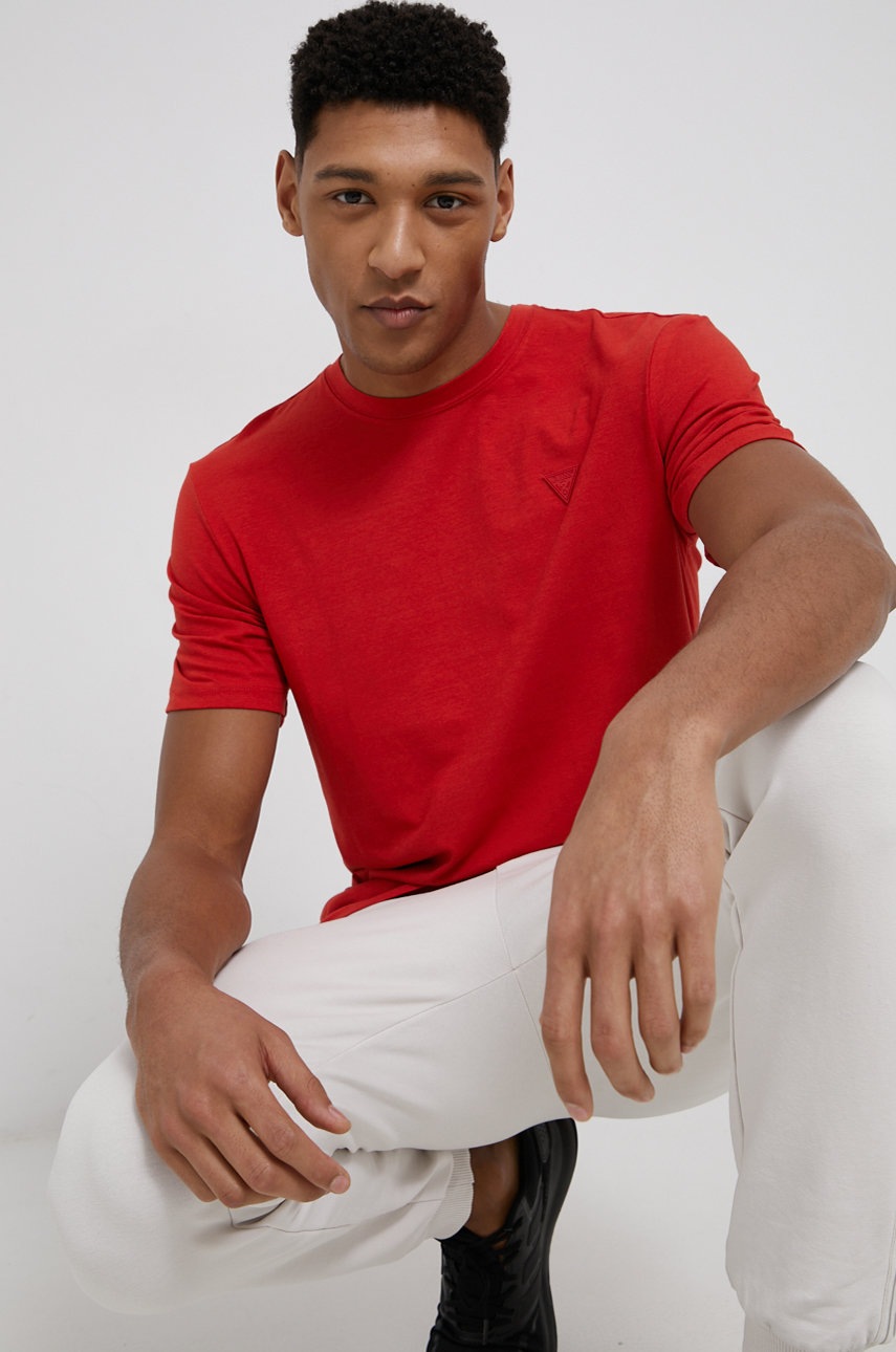 Тениска Guess мъжка в червено с изчистен дизайн, Червен