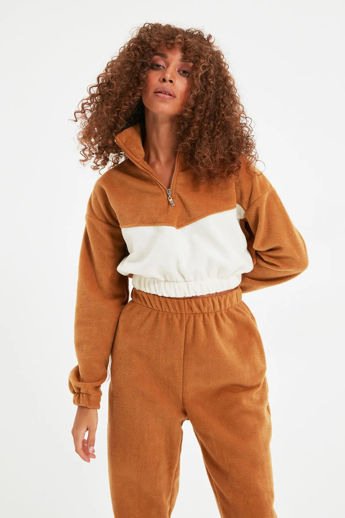Women's Sweatshirt Camel Crop Color Block Fleece Hoodies Fashion All Season New Designer Pullovers Fleece Hoodies