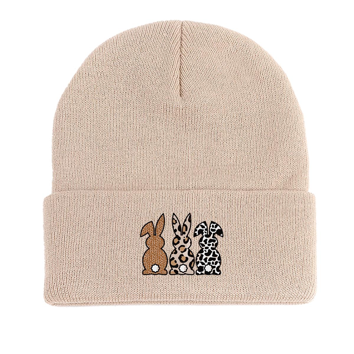 Теплая вязаная шапка с изображением кроликов, шапка-бини, шапка-бини с изображением животных, ветрозащитная спортивная шапка-помпон карамельного цвета, вязаная шапка-бини as the picture бежевый