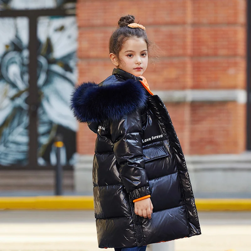 Теплая куртка на 80% белом утином пуху для девочек, зимняя одежда, детская утепленная верхняя одежда, парка, водонепроницаемое пальто, зимний ...