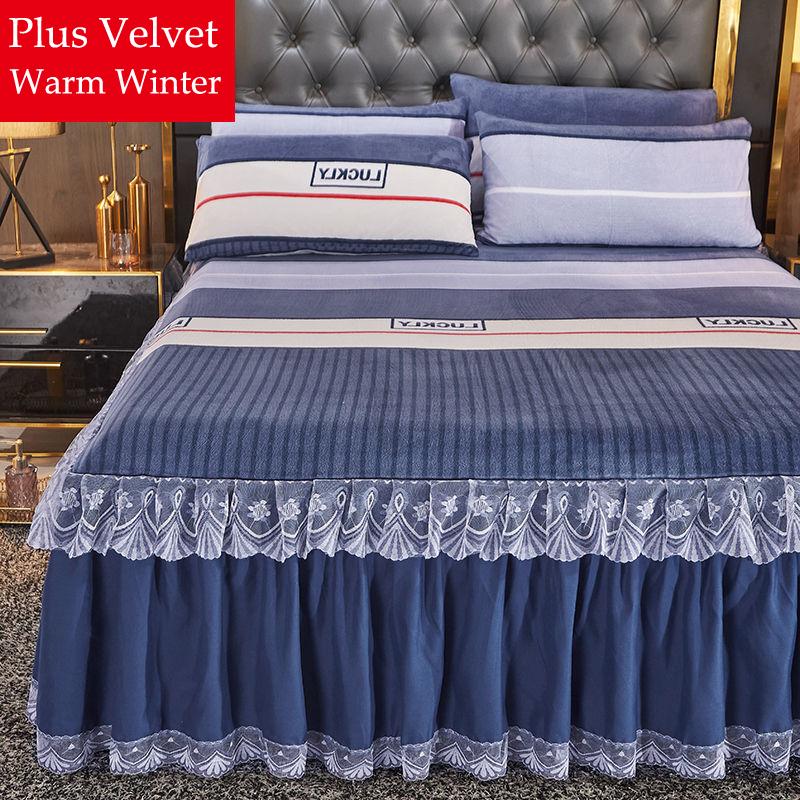 Теплая юбка-кровать, бархатное утолщенное покрывало, комплект из трех предметов, фланелевое постельное белье размера King Queen с наволочками 3 Pcs 150x200cm