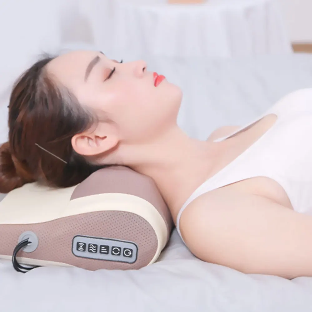 12V 24W Three Gear Neck Pillow Shiatsu Kneading Shoulder Back Heat Massager Wormwood Pack Pillow for Car Home with US