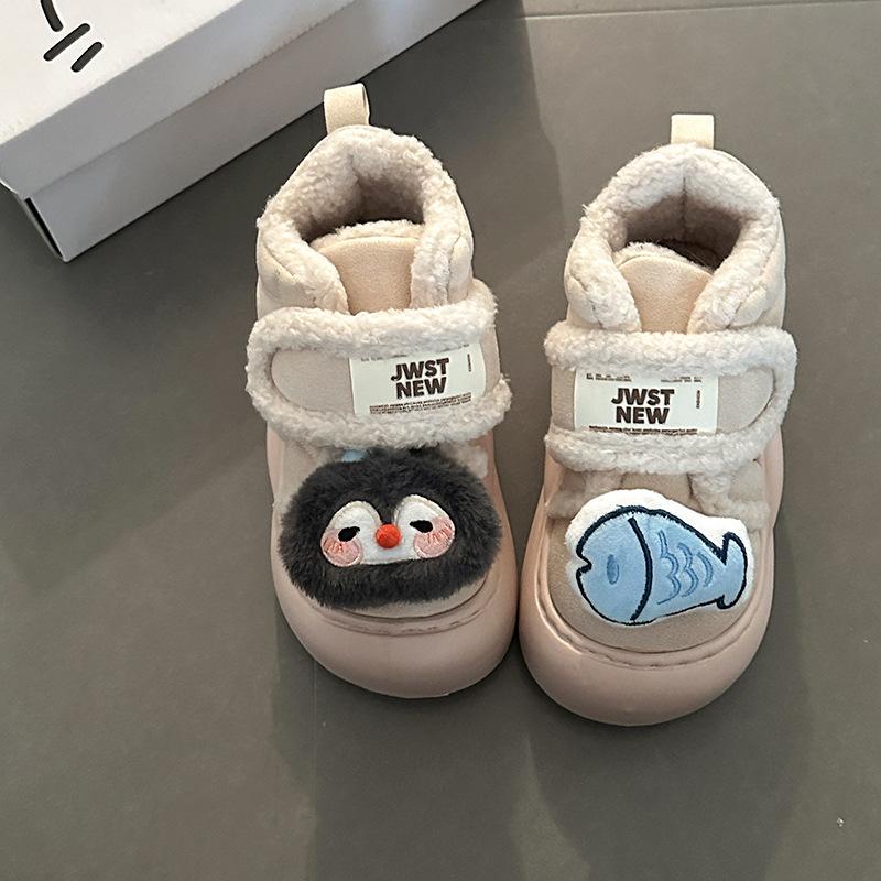 Теплые зимние ботинки на липучке, на толстой подошве, модные, с мультяшным милым пингвином, женские, на плоской подошве, большие хлопковые ботинки 40-41 бежевый