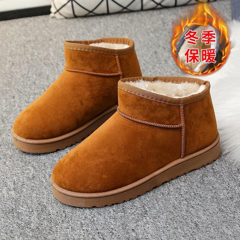 Теплые зимние ботинки хлопковые ботинки 2024 зима новая зимняя обувь большой размер плоская подошва короткое голенище Северо-восточные хлопковые ботинки набивные и утолщенные 35 коричневый