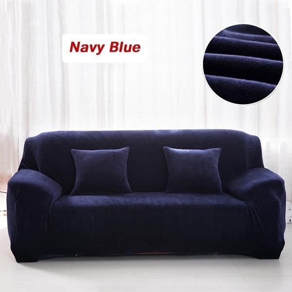 Теплые 1-4 местные толстые плюшевые чехлы для диванов с креслами в стиле ретро, мягкие однотонные чехлы для диванов 1 Seat(90-140cm) тёмно-синий