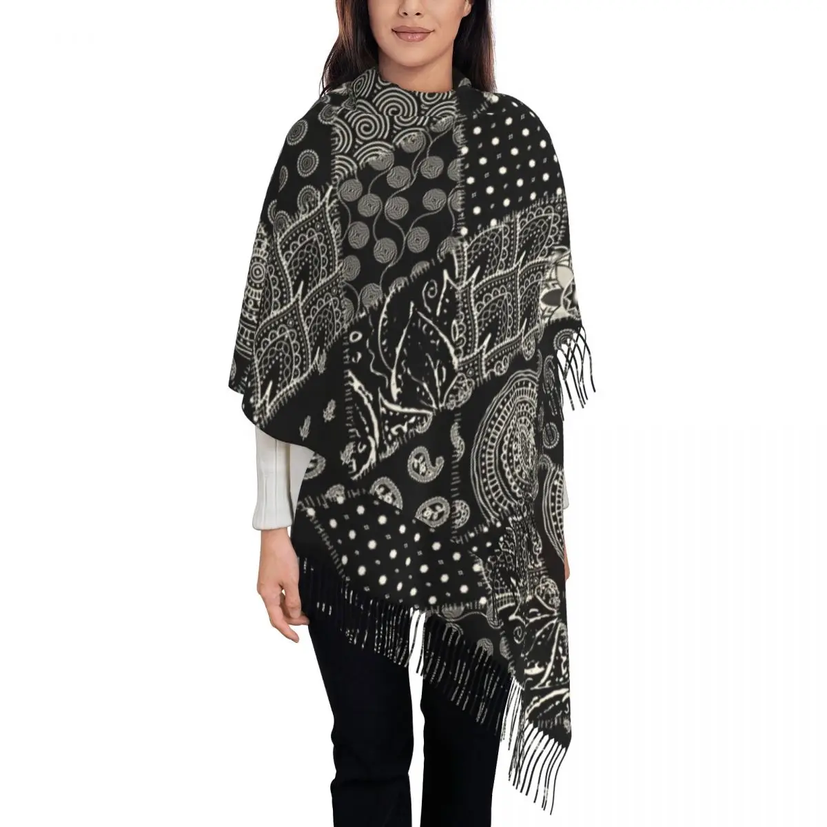 Теплый мягкий шарф, осенняя черная бандана, шали и обертывание, бохо, винтажный, под заказ, женский платок, модный головной убор, шарфы