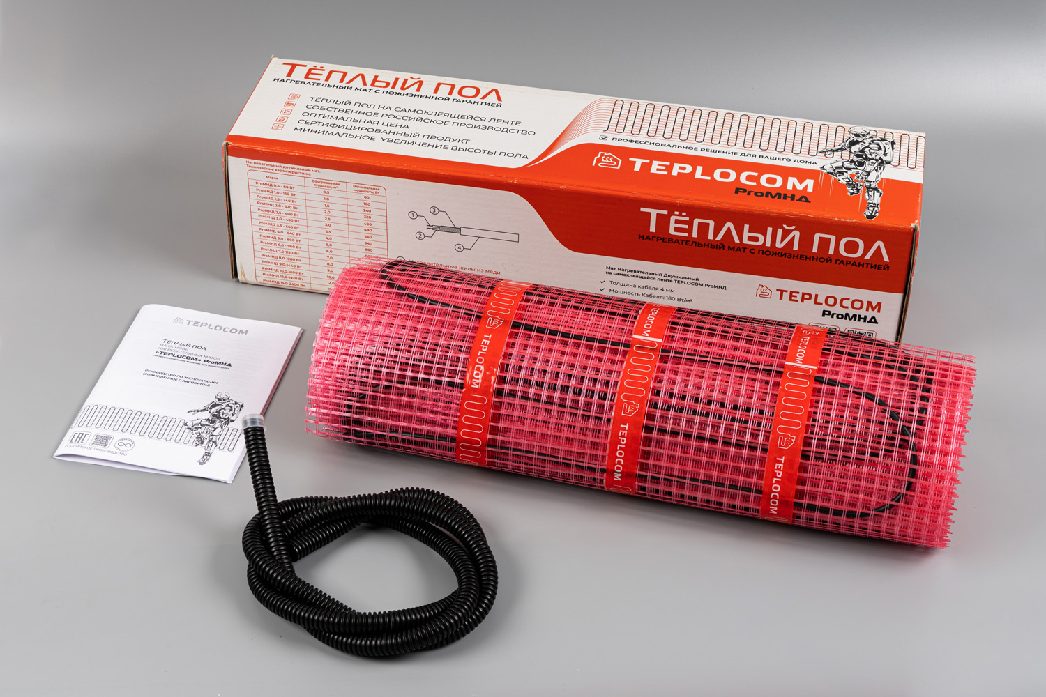 Теплый пол 10м² нагревательный мат 50см x 20м двужильный 2м, 1600Вт / 160 Вт/м², без термостата, Бастион TEPLOCOM ProМНД-10,0 (ProМНД-10,0), ProМНД-10,0