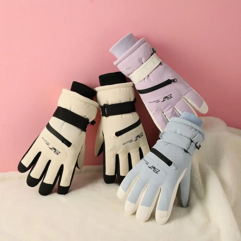 Термальные лыжные перчатки с карманом на молнии, утепленные плюшевые перчатки для сенсорного экрана, теплые модные мотоциклетные перчатки, защитное снаряжение