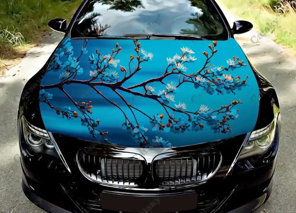 Watercolor Plum Blossom Car Hood Vinyl Stickers Wrap Vinyl Film Engine Cover Decals Sticker on Car Auto Accessories