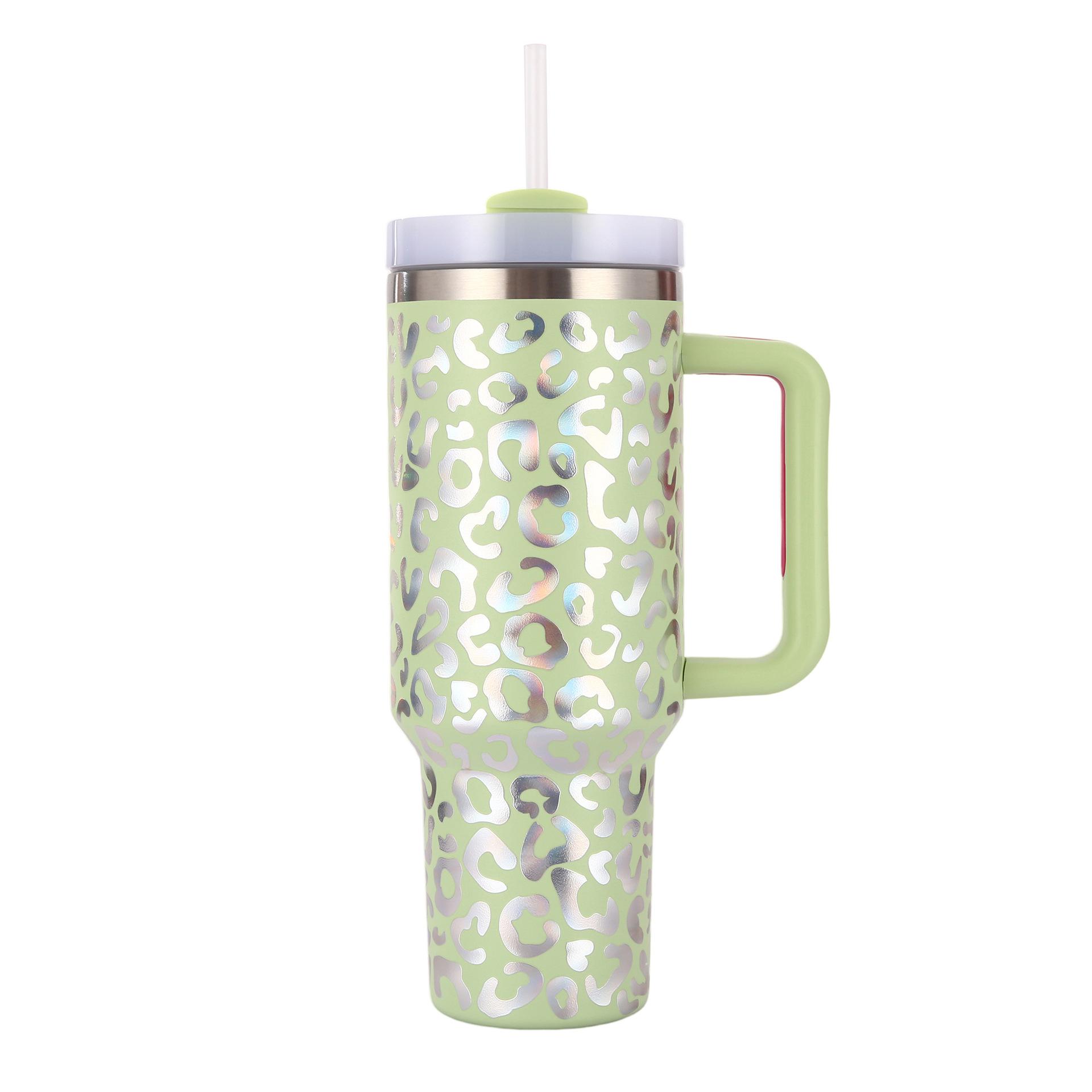 Термокружка с леопардовым принтом и ручкой из нержавеющей стали для автомобиля, большая емкость 40oz