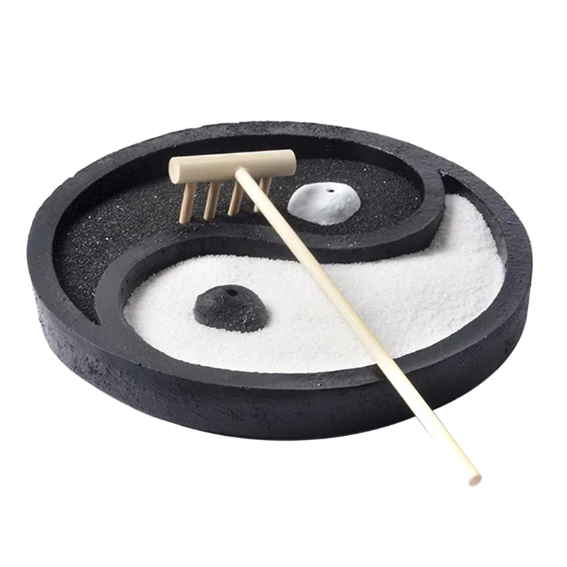 Садовый песочный стол Yin And Yang Tai Chi And Eight schemzen, черно-белый круглый ландшафт для домашнего декора, черный