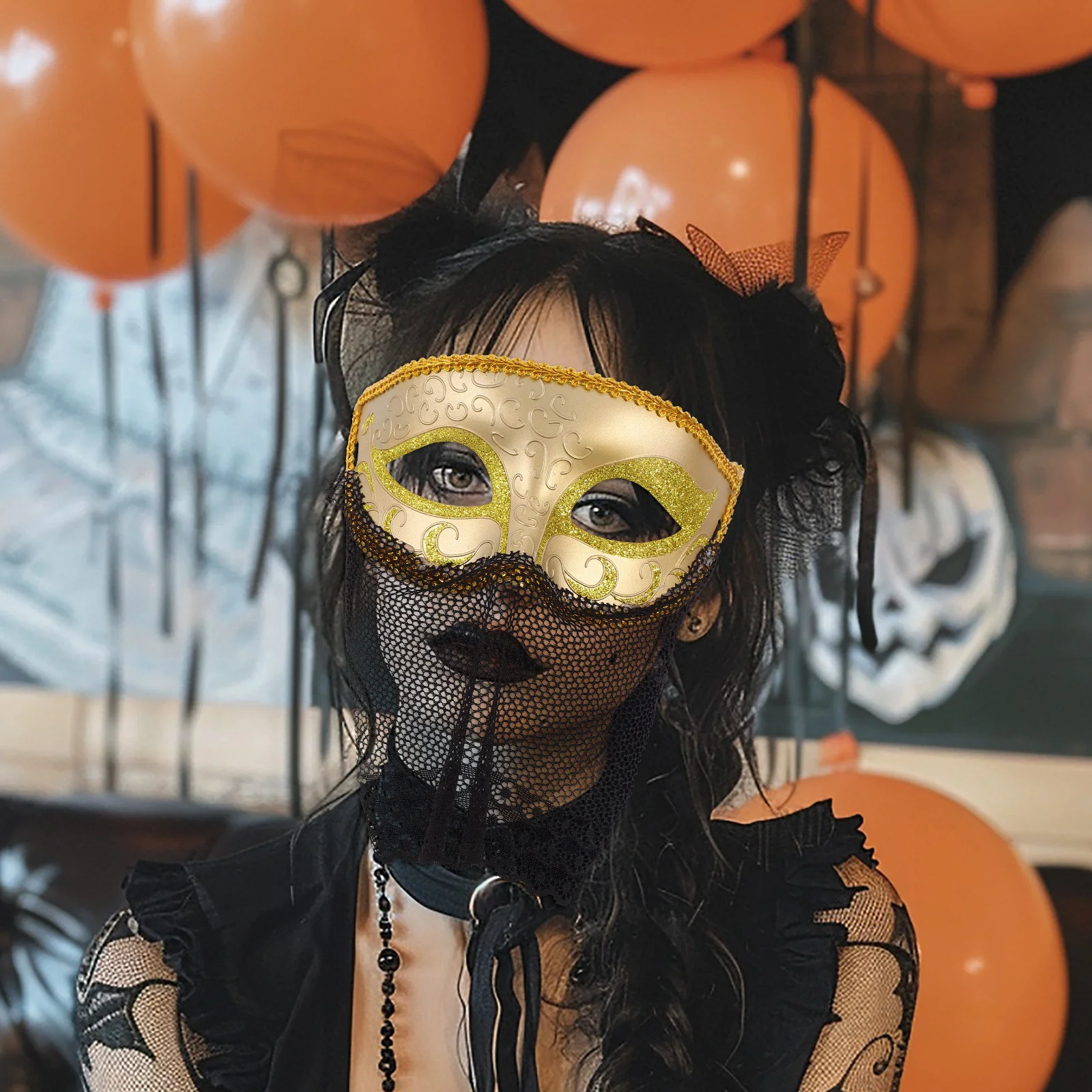 Venetian Masquerade Half Face Mask Lace Veil Stage Performance Halloween Mardi Gras Costume Party Mask Venetian Masks