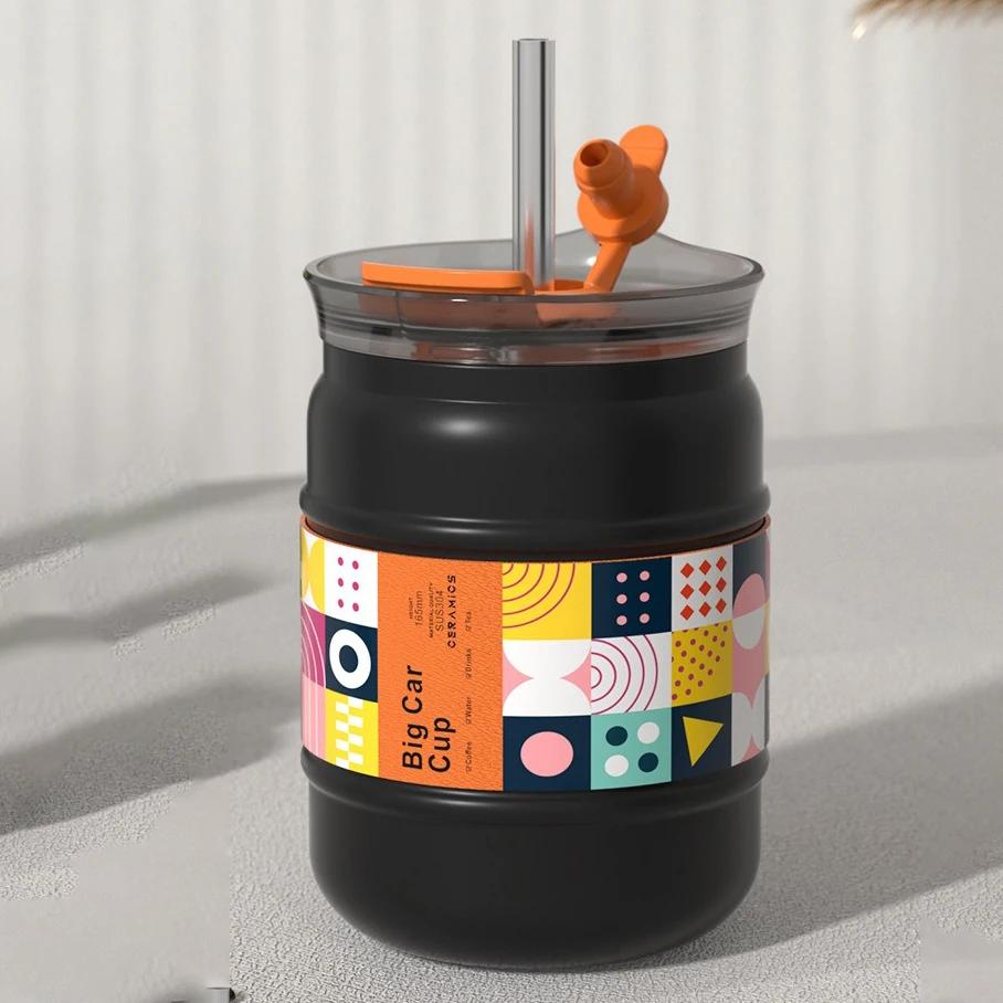 Термос из нержавеющей стали, керамическая внутренняя кружка для кофе, переносной стакан с косточкой, модная кофейная чашка, 380 мл 380ml чёрный