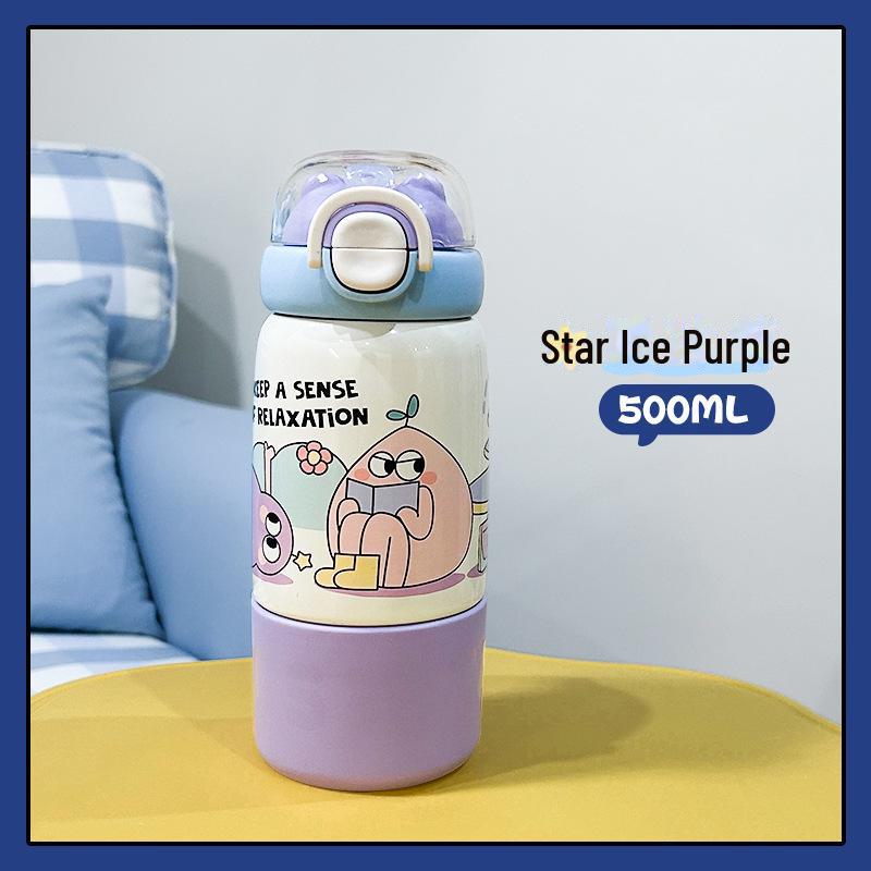 Термос с соломой для девочек Xiaocha Diary High-Value: Детский изолированный переносной чайник с защитой от падения 500ml