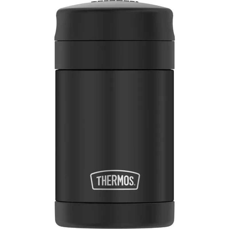 Термос 16 унций, изолированная банка для еды со складной ложкой, матовый черный