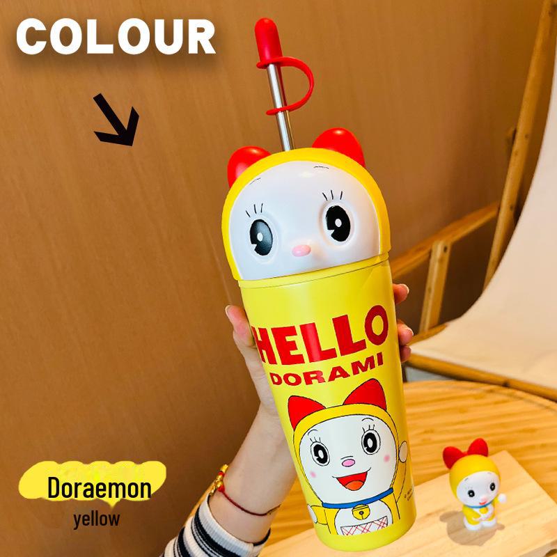 Термос Doraemon большой емкости из нержавеющей стали 304 с трубочкой для детей 600ml