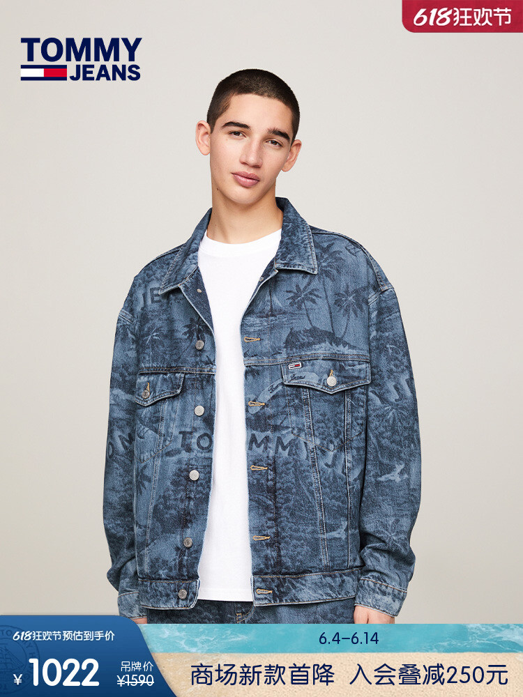 Куртка джинсовая Tommy Hilfiger с принтом по всей поверхности, темно-синий