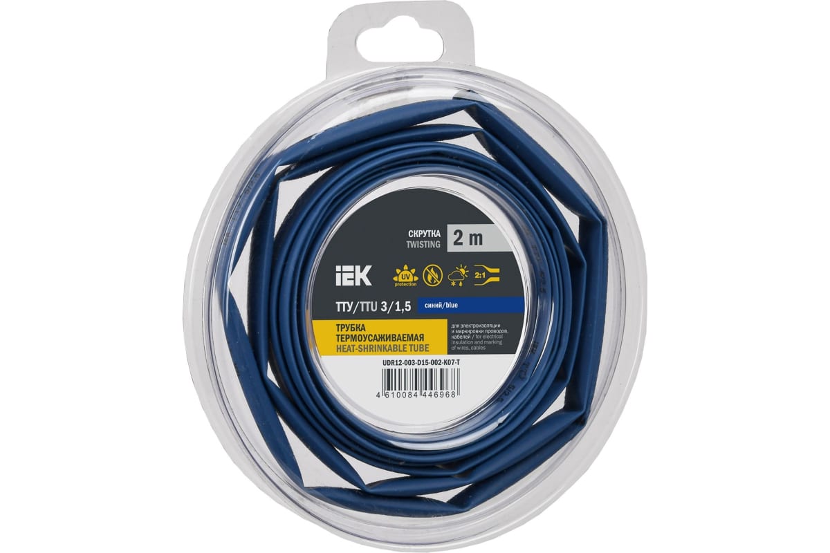 Термоусаживаемая трубка ТУТ IEK ТТУ нг-LS, 3 мм/1.5 мм, 2:1, 1 шт. x 2 м, синий (UDR12-003-D15-002-K07-T), ТТУ нг-LS