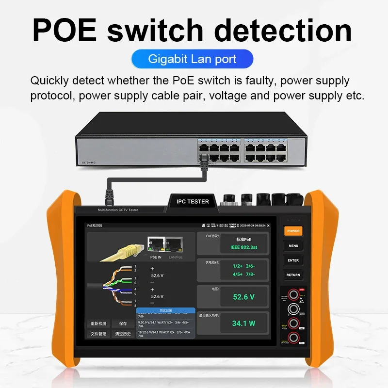 Тестер видеонаблюдения h12clmovtader sef, 8 ''экран, 8 Мп, CVI/ TVI/AHD/SDI HDMI/VGA вход, IP-камера «Все в одном» 8K H.265, тестер с портом POE ++, модуль SFP