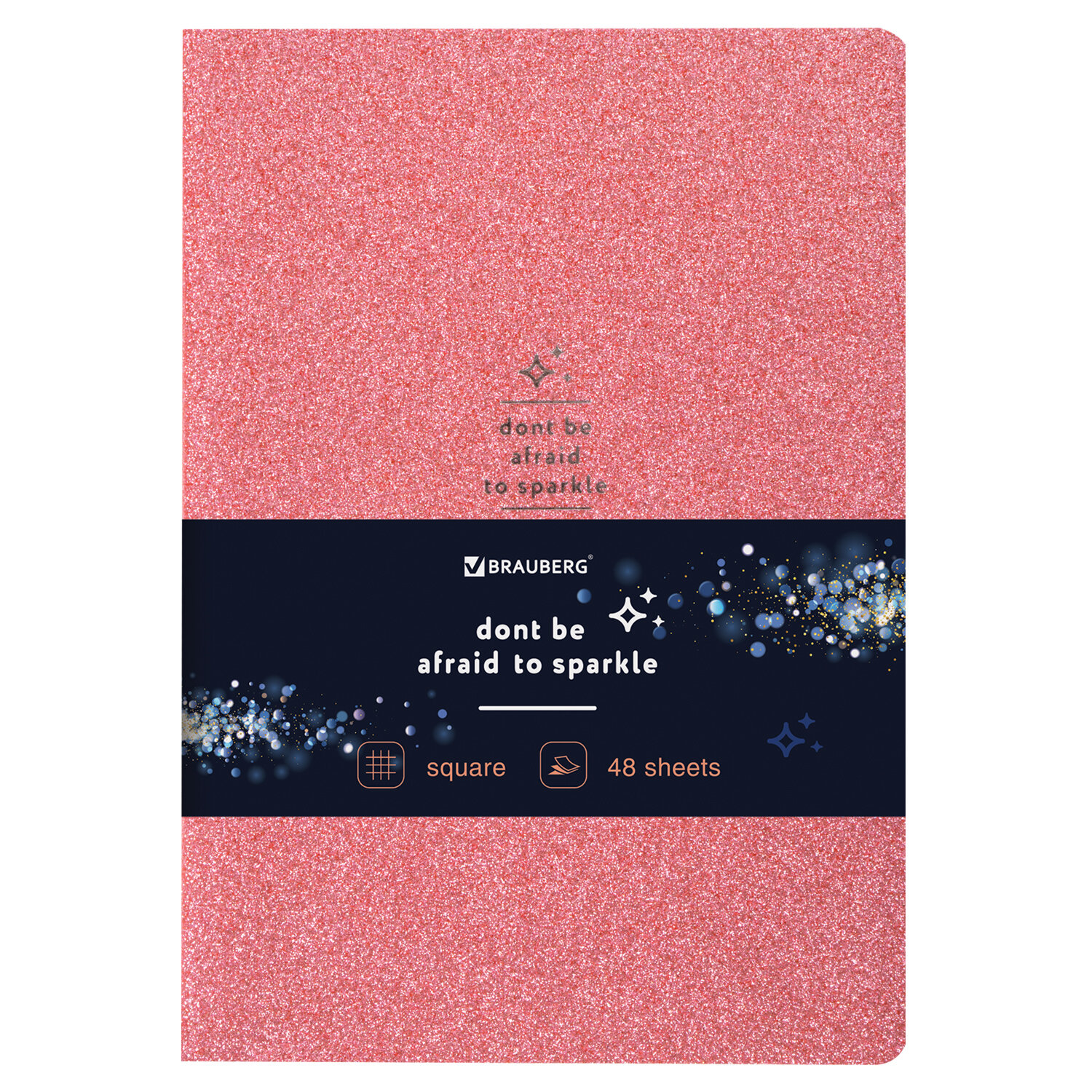 Тетрадь клетка A5 48 листов, сшивка, поля, обложка кожзам - розовый, BRAUBERG SPARKLE (403852), нет данных