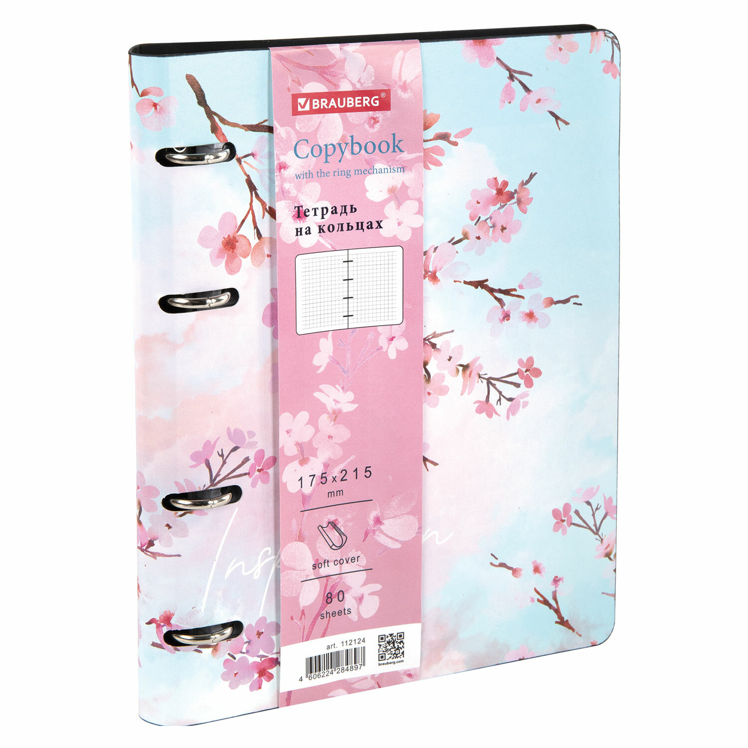 Тетрадь клетка A5 80 листов, кольца, поля, обложка эко-кожа - Inspiration, BRAUBERG VISTA (112124)