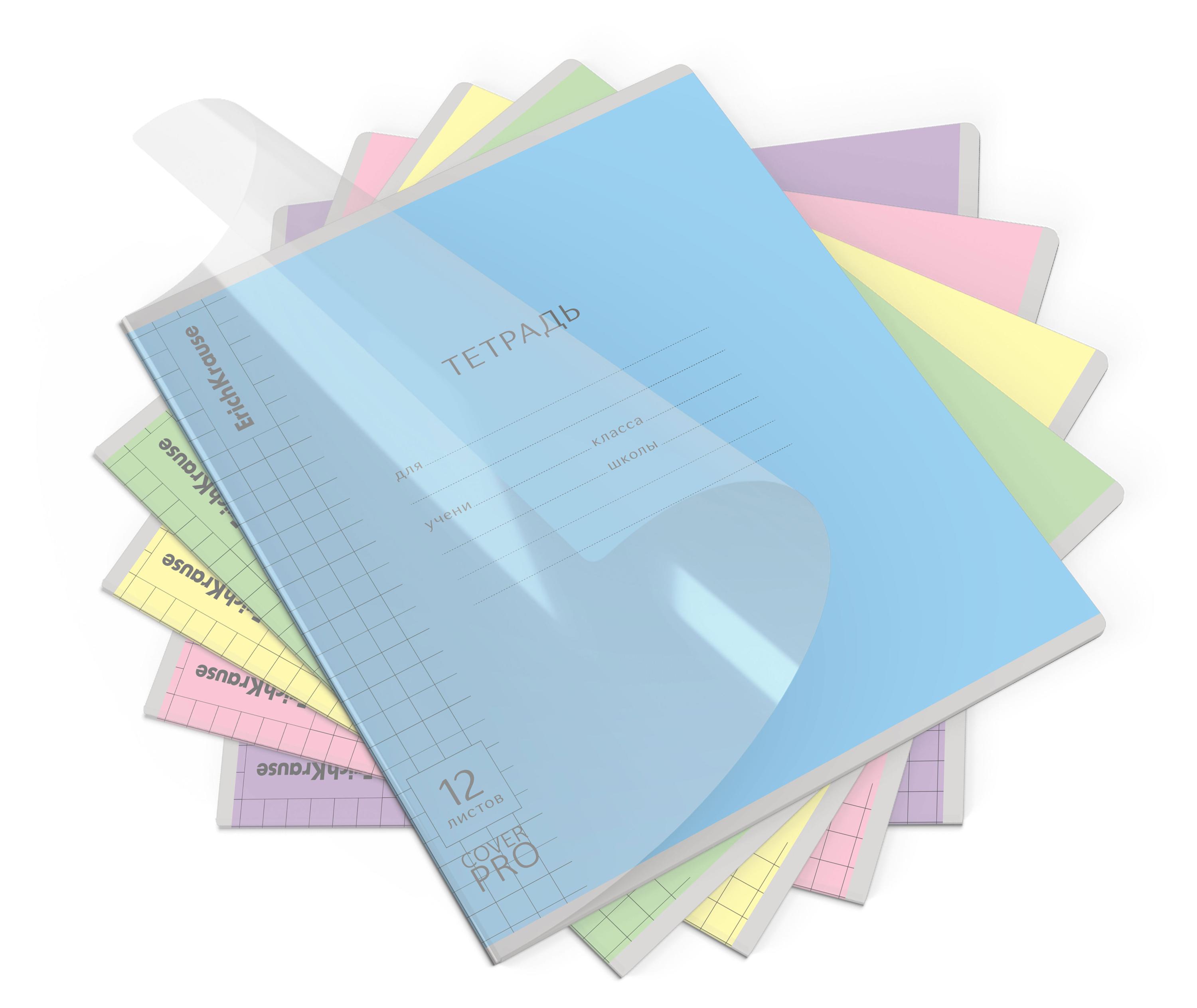Тетрадь школьная ученическая формата А5+ (170x203 мм). Двойная обложка: внешняя выполнена из высококачественного износостойкого прозрачного пластика с фактурой апельсиновая корка, внутренняя из качественной мелованной бумаги. В блоке 12 листов в крупную клетку. Бумага офсетная плотностью 60 г/м2. Цвет линовки синий. Скругленные уголки обложки и блока. Тип скрепления скоба.