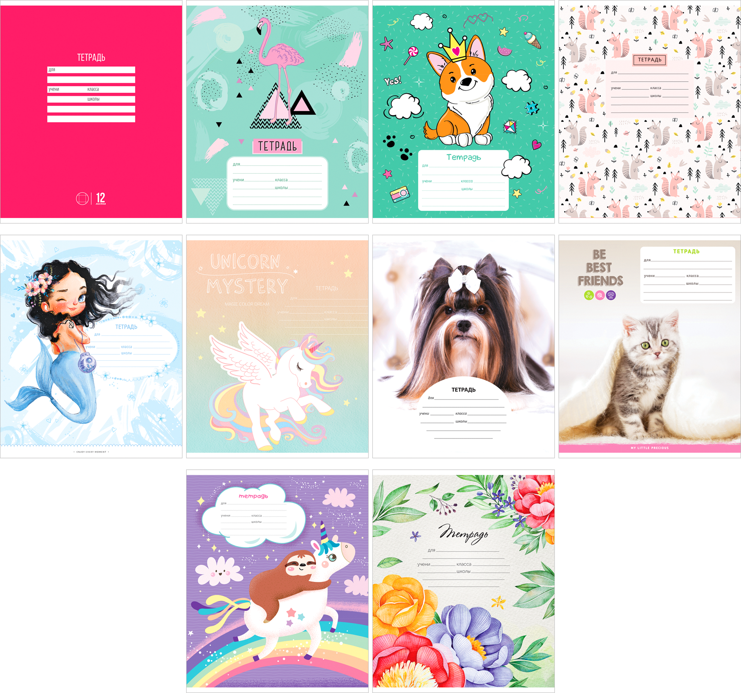 Тетрадь ArtSpace Микс для девочек 12 листов в крупную клетку, 1 шт. в ассортименте