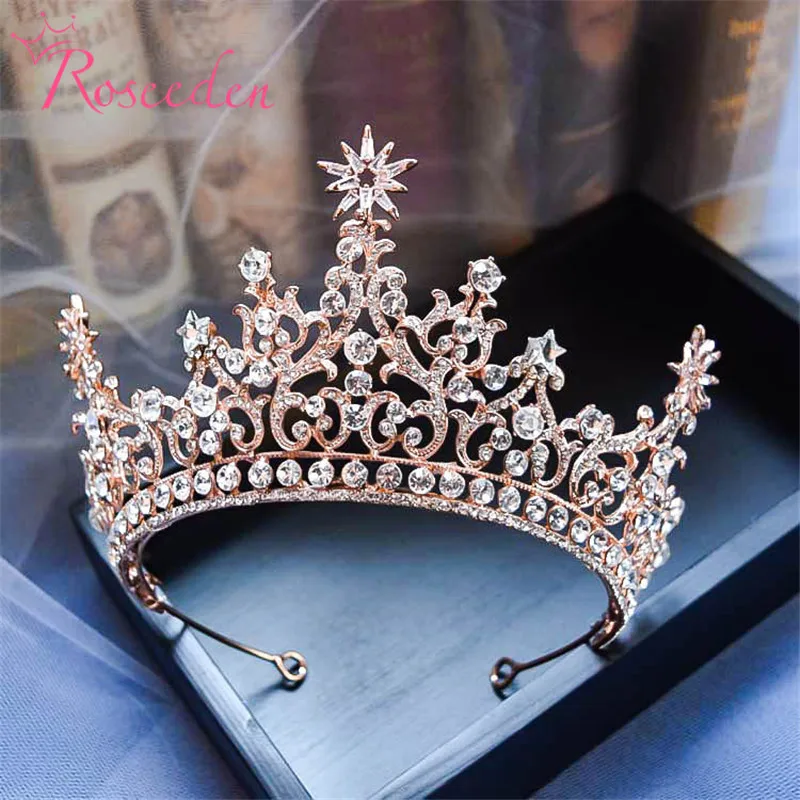 Тиары в стиле барокко для девушек, золотистые тиары в форме королевы, короны, праздничные свадебные аксессуары для волос, ювелирные изделия ...
