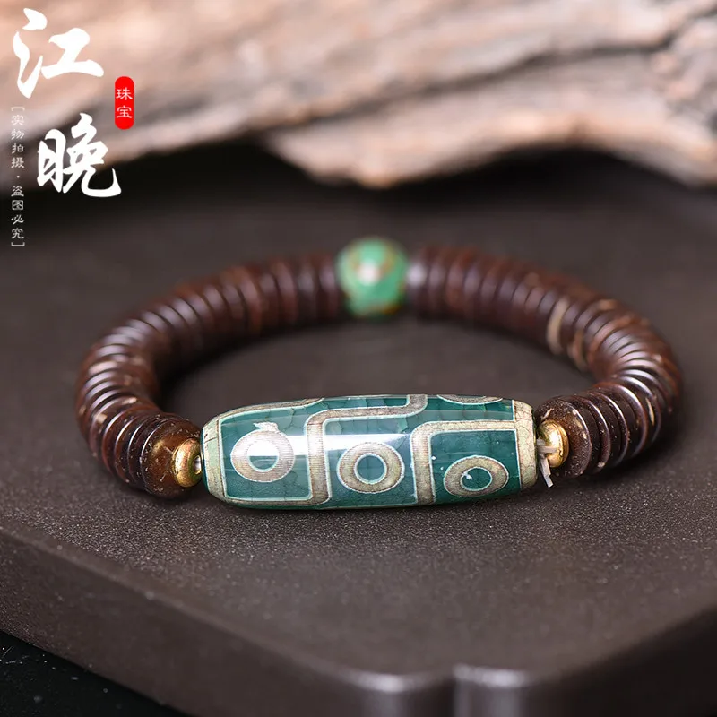 Тибетский браслет с бусинами девяти неба мужской Агат три глаза Тибетский Стиль литературная игра