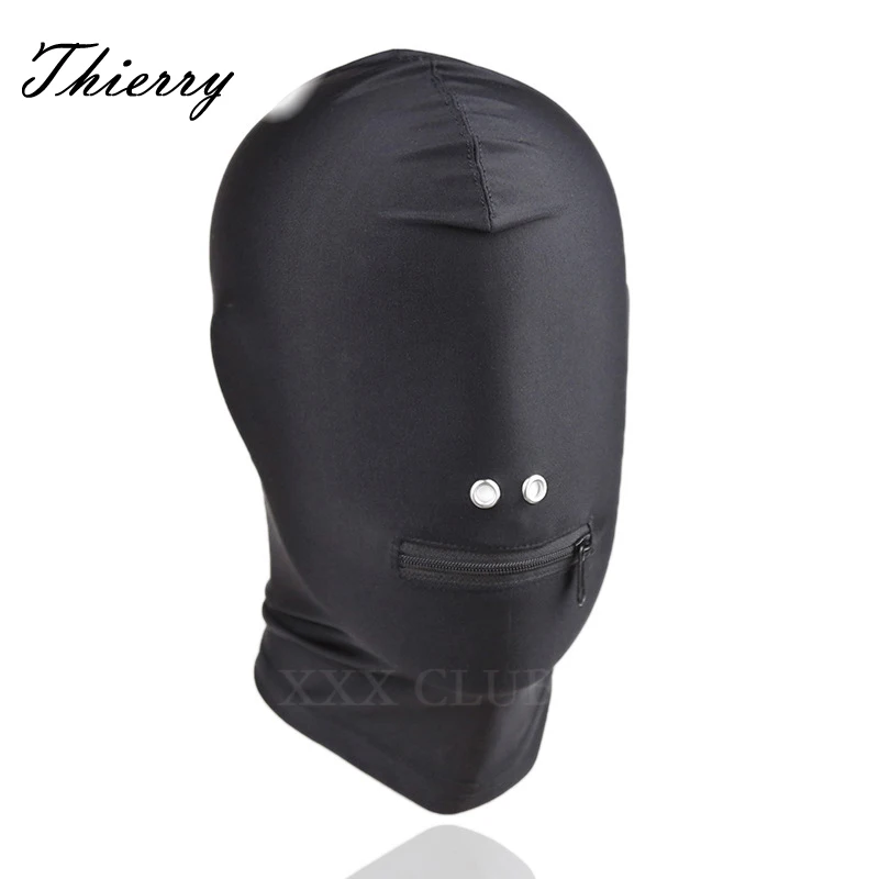Тиерри рот на молнии веки растягивающаяся голова капот, взрослые игры Фетиш SM Связывание удерживающая продукция секс-игрушки для пар