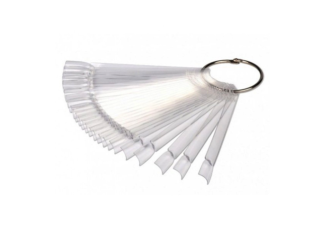 Типсы на кольце 50 штук белый перламутр. Белая палитра выполнена в виде отдельных типс, которые можно скрепить в виде веера. Подходит для тестирования цветов лаков, гель лаков, а также для демонстрации вариантов дизайна ногтей.