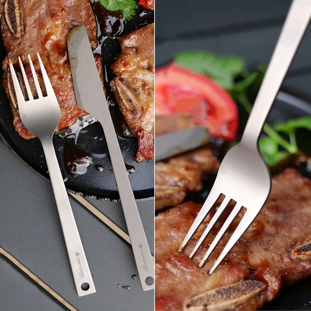Титановый набор столовых приборов, легкая вилка, ложка, резак, набор с карабином и сумкой для хранения для дома, путешествия, кемпинга, пешег...