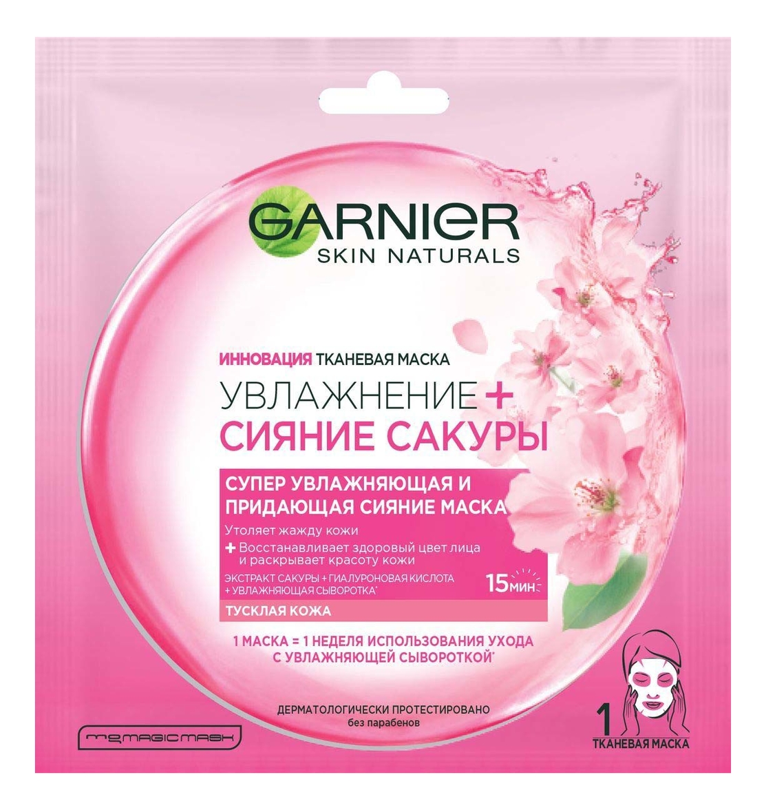 GARNIER тканевая маска для лица увлажнение + сияние сакуры 32г — купить увлажняющие и питающие средства для кожи лица по доступной цене в интернет-магазине, смотреть фото и отзывы на Randewoo.ru