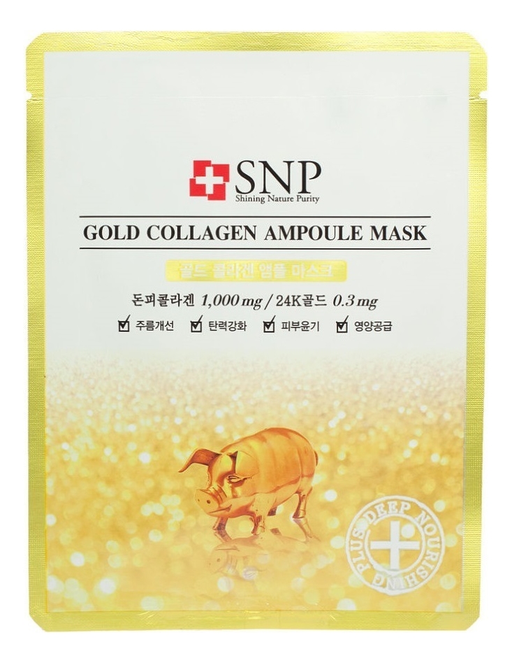 SNP тканевая маска для лица с золотым коллагеном gold collagen ampoule mask 25г — купить тканевую маску для лица в интернет-магазине по выгодной цене, посмотреть фото, отзывы на Randewoo.ru