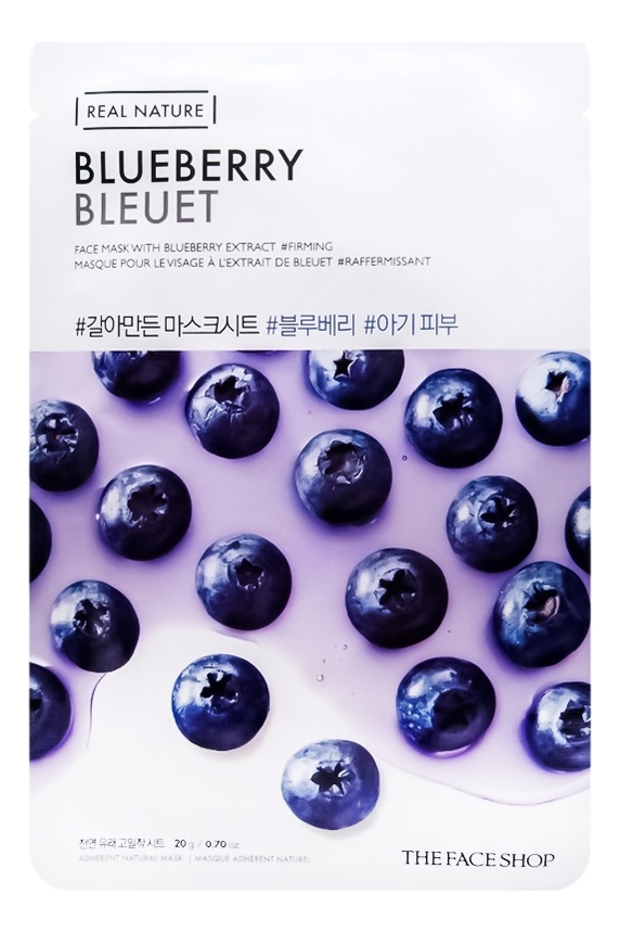 Тканевая маска для лица с экстрактом голубики Real Nature Mask Blueberry 20г