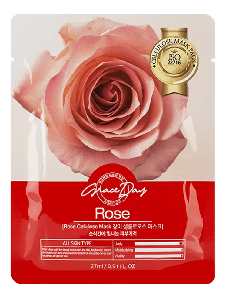 Тканевая маска для лица Rose Cellulose Mask 27мл: Маска 1шт, Тканевая маска для лица Rose Cellulose Mask 27мл