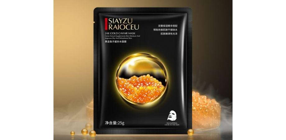 Тканевая маска с экстрактом золота и черной икры Siayzu Raioceu 24K Gold Caviar Mask.