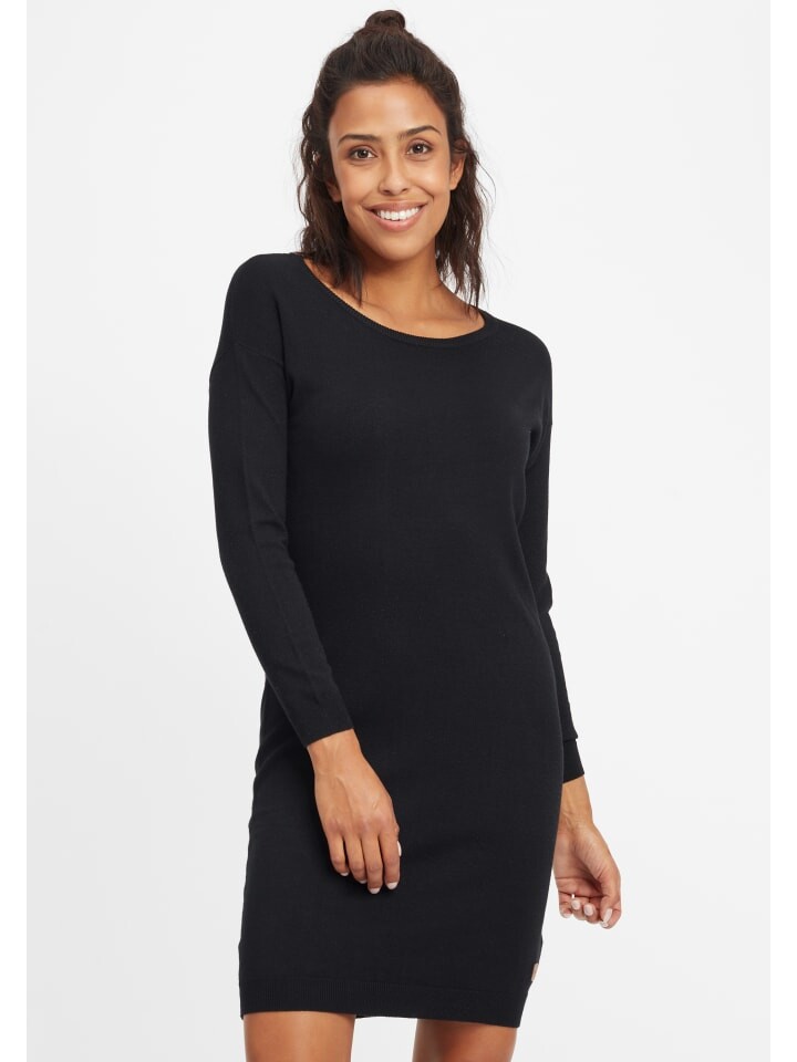 Короткое платье Oxmo Strickkleid OXElla 21300566ME Kleid mit Rundhals-Ausschnitt, черный