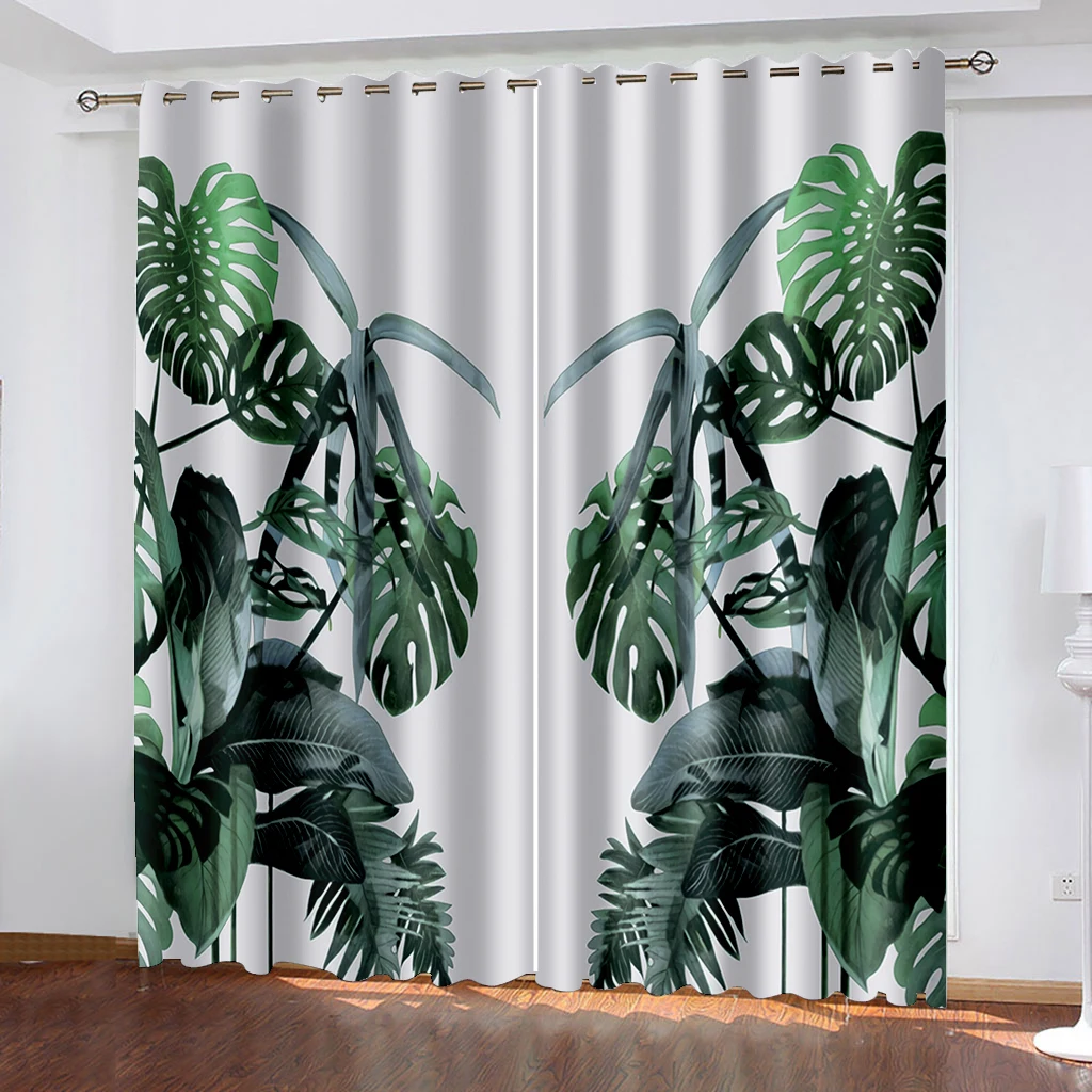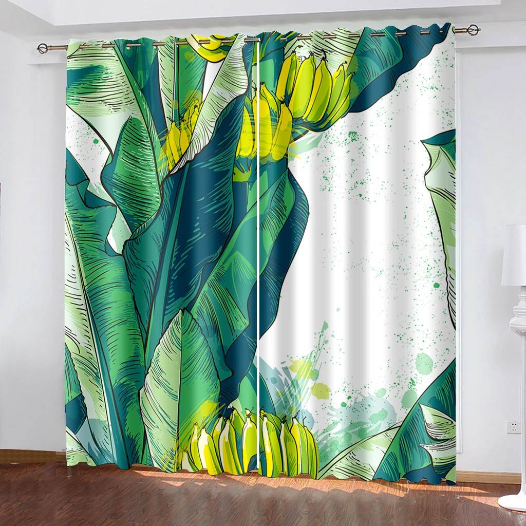 Тканые шторы с тропическим принтом листьев, две отдельные шторы слева и справа от детской
