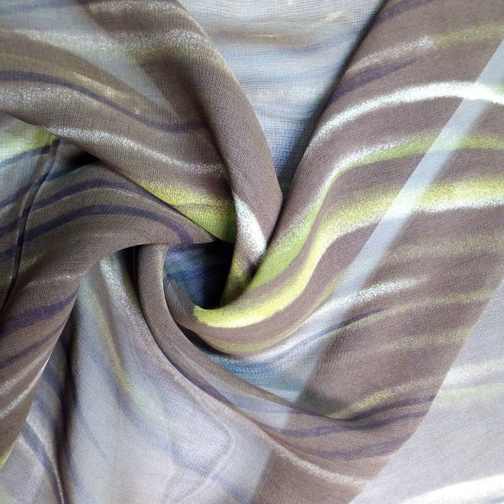 Креп-шифон полупрозрачный, оливково-коричневая волнаСостав: вискоза 100%Остатки: 9,0 и 1,5 м