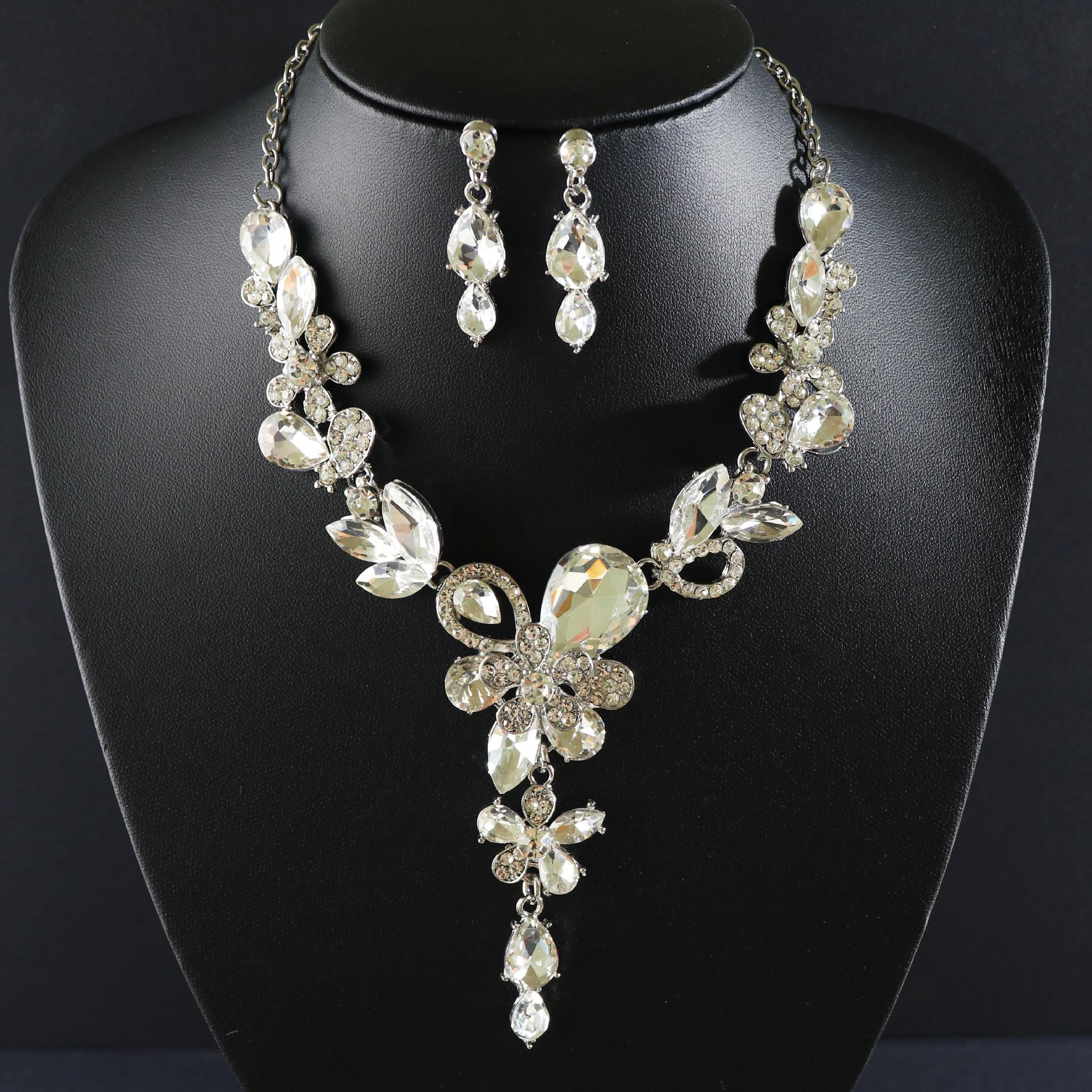 Товар Серьги Комплект Цепочка 2-х Части Кристалл Стеклянный Сплав Платье Аксессуары Женское Ожерелье белый