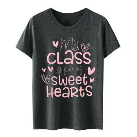 koaiezne Women s Casual Letter Printed Top Shirt Cute Fashion T-Shirt Blouse Short Sleeve Round Neck Elegant Top Shirt Girl Band Pajama Shirt Womens