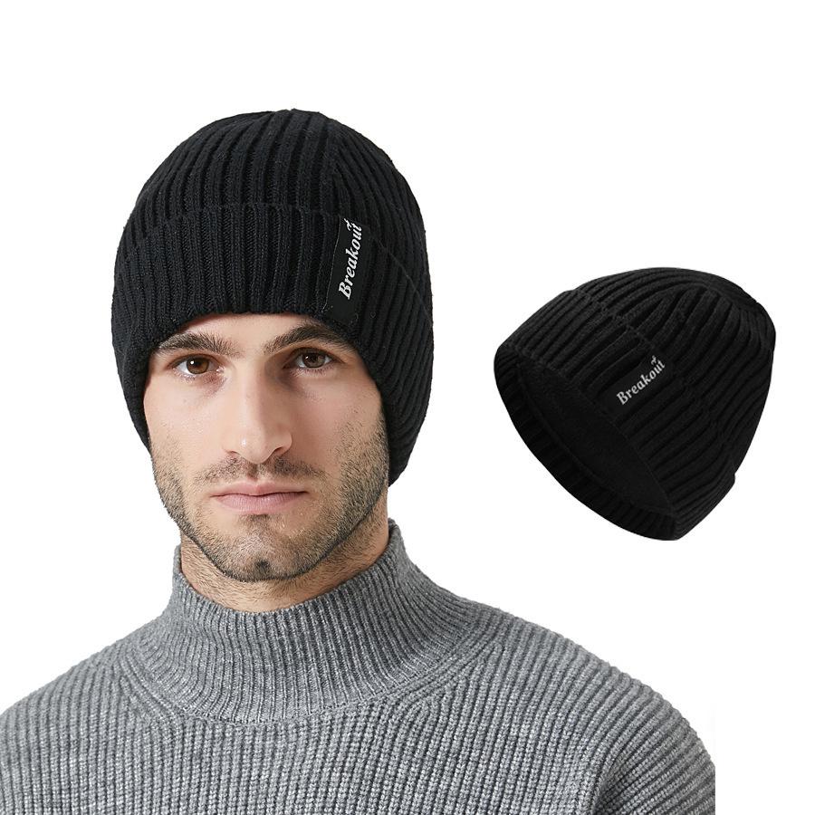 Толстая вязаная шапка, мужская зимняя уличная морозостойкая шапка для защиты ушей, однотонная теплая шапка чёрный