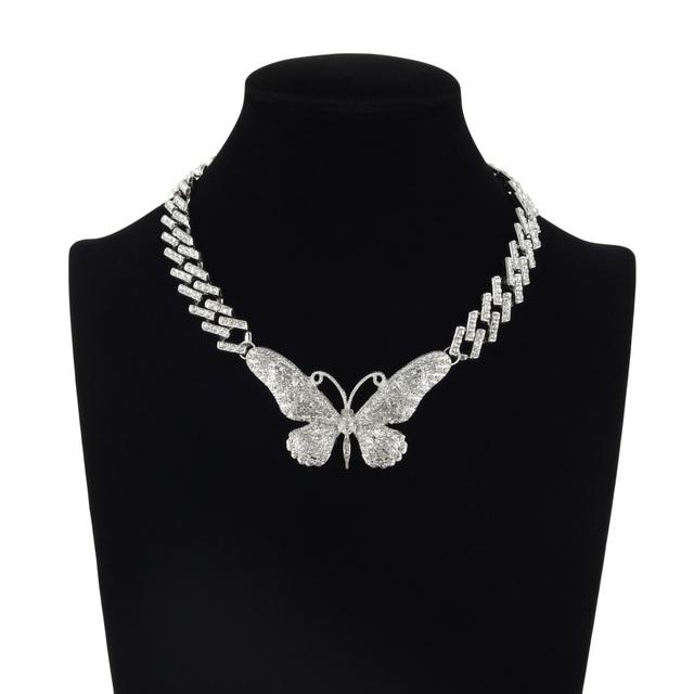 Толстая кубинская цепочка с большой бабочкой, ожерелье для женщин, чокер со стразами, ювелирные изделия для девочек 45CM