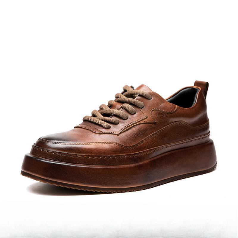 Толстая подошва, увеличивающая рост, высококачественная кожаная обувь, мужская зимняя дышащая деловая повседневная мужская обувь из натуральной кожи первого слоя из коровьей кожи 44 коричневый