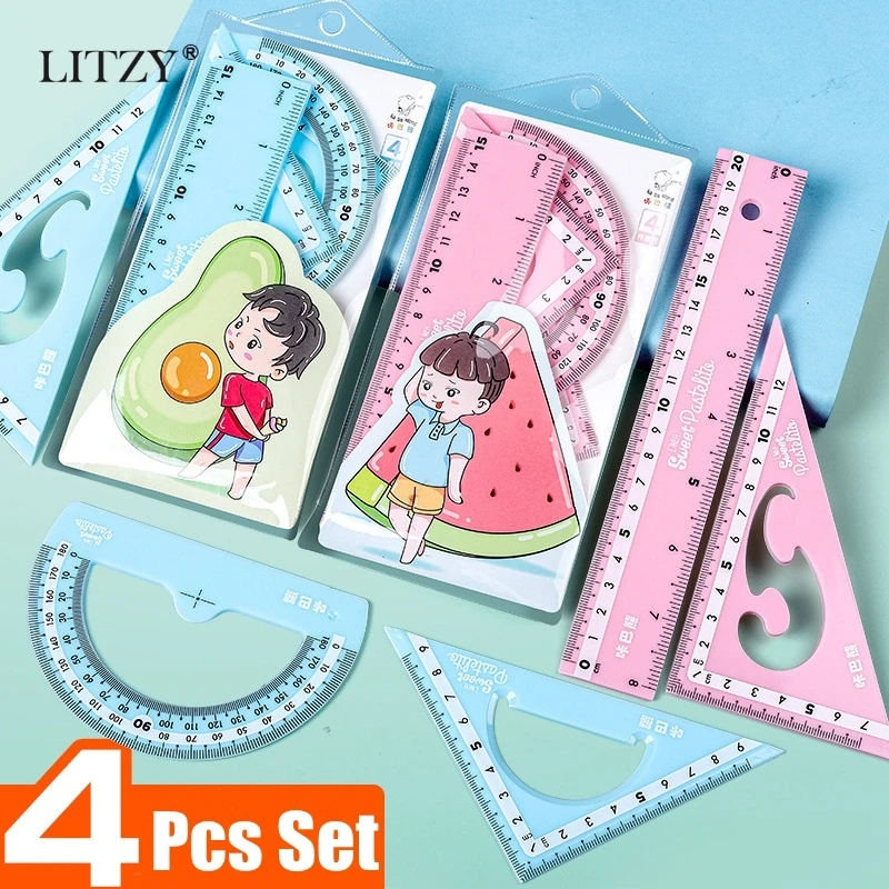 Набор геометрических линейки-макароны 4 шт./лот, транспортир, математические компасы для школы, канцелярские товары, пластиковые прямые лин...