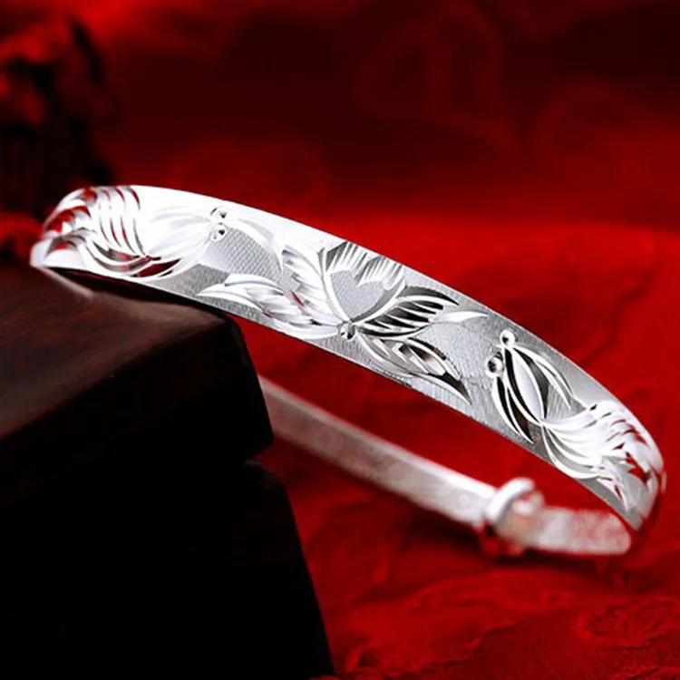 Классический Chinene Стиль лотоса карп повезло с серебряным покрытием, браслет на запястье, для женщин, роскошные свадебные модные манжеты юве...