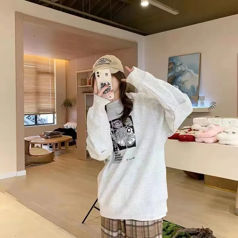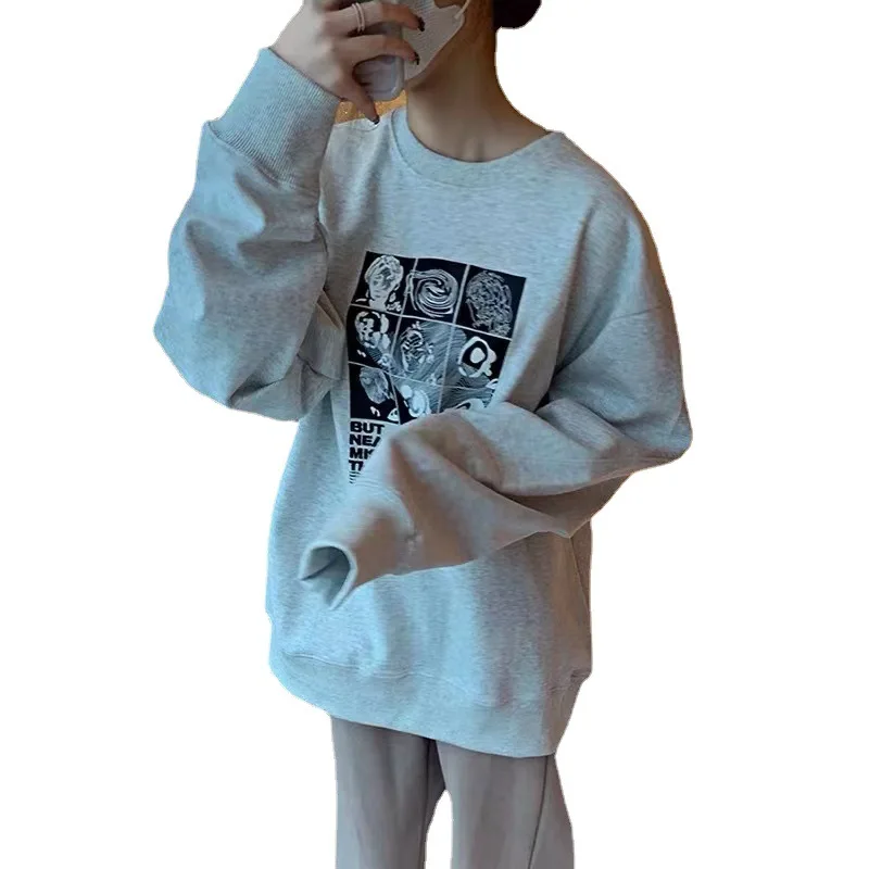 Толстовка Женская с вышивкой и круглым вырезом, свободного покроя